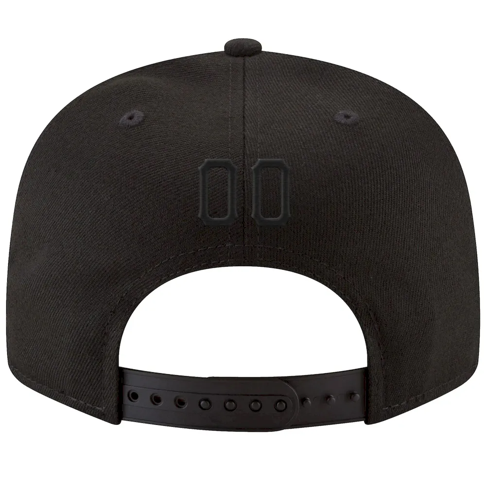 Custom Black Black-Old Gold Stitched Adjustable Snapback Hat