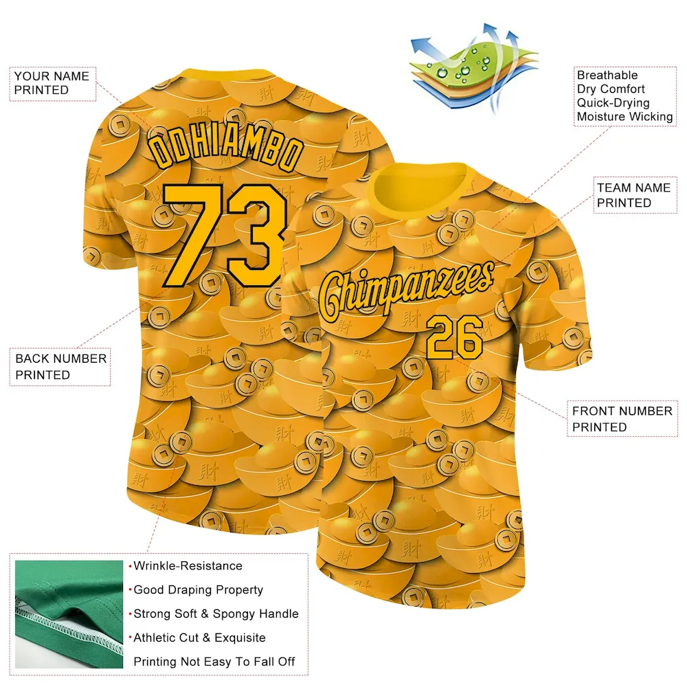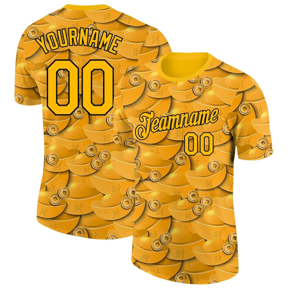 Custom-Gold-Black-3D-Pattern-Design-Gold-Ingot-Money-Theme-Performance-TShirt