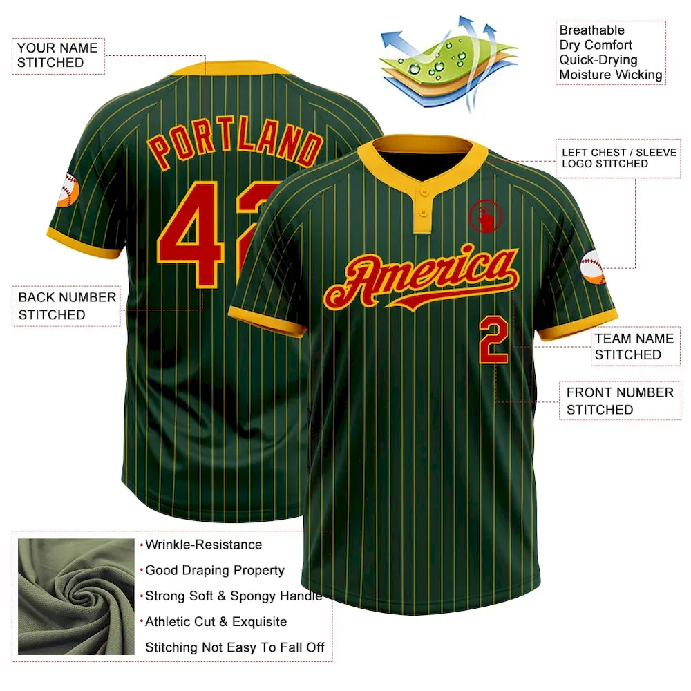 SKU: Custom-Green-Gold-Pinstripe-Red-TwoButton-Unisex-Softball-Jersey Categories: , Tags: ,