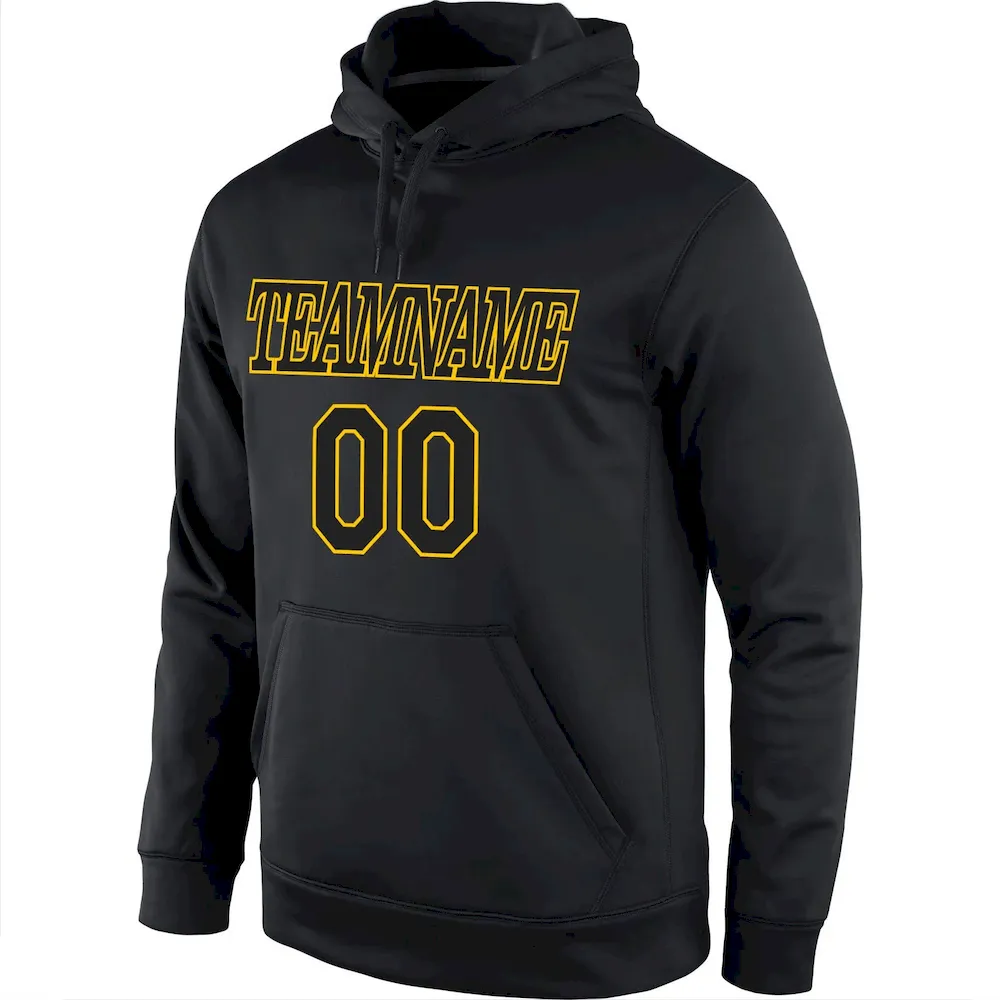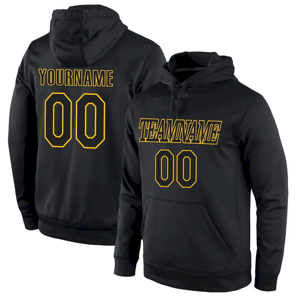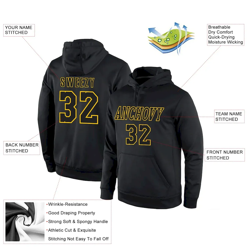 Custom Stitched Black Black-Gold Sports Pullover Sweatshirt Hoodie